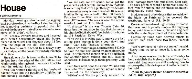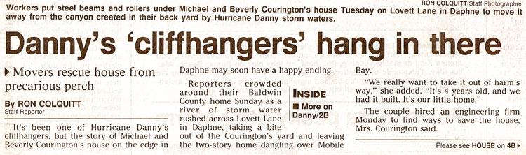 July of 1997 shortly after Hurricane Danny House dangling over Mobile Bay rescued