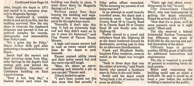 August 16 1996 The historic Foley depot returns home