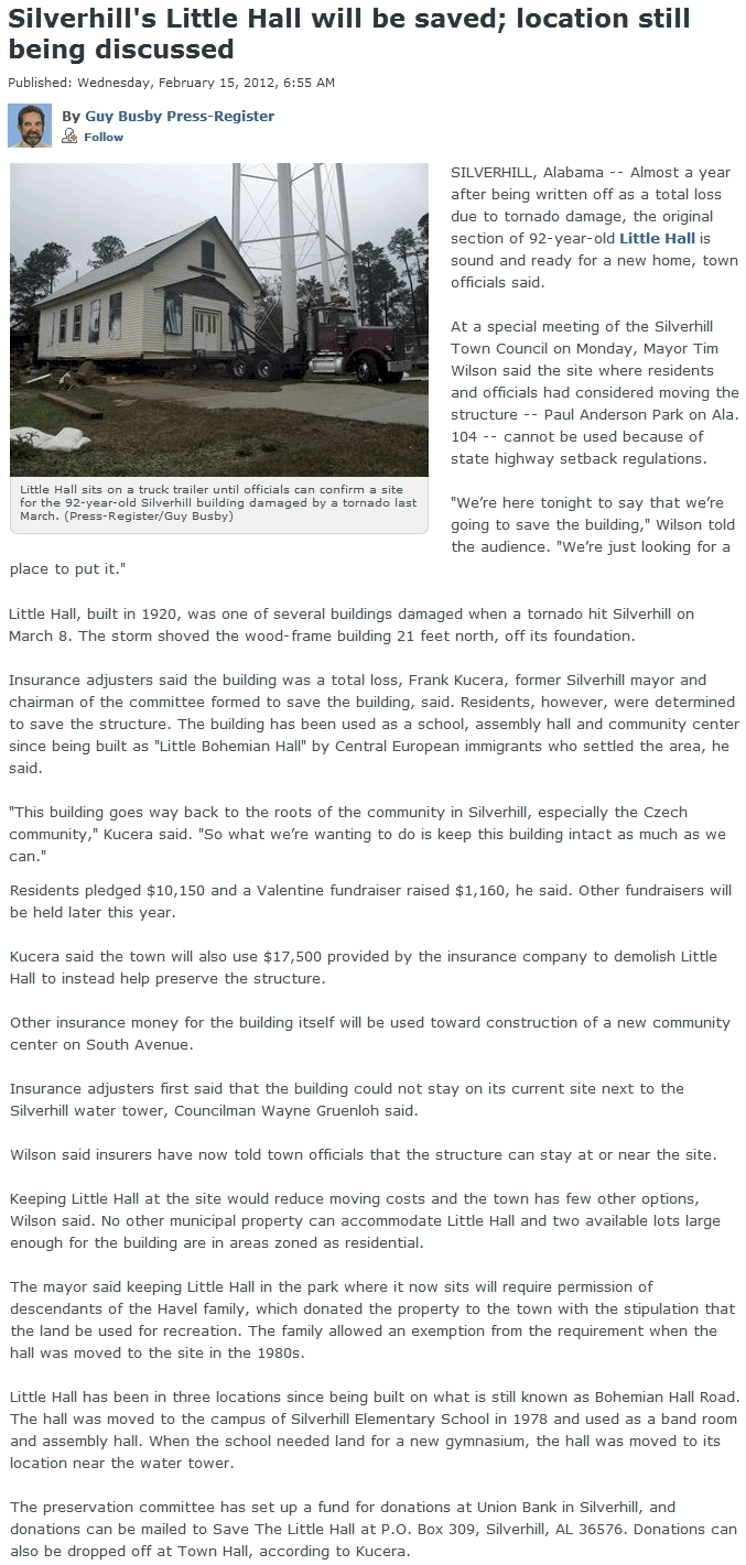 Silverhill folks campaigned to save Little Hall. Clay Fauver's